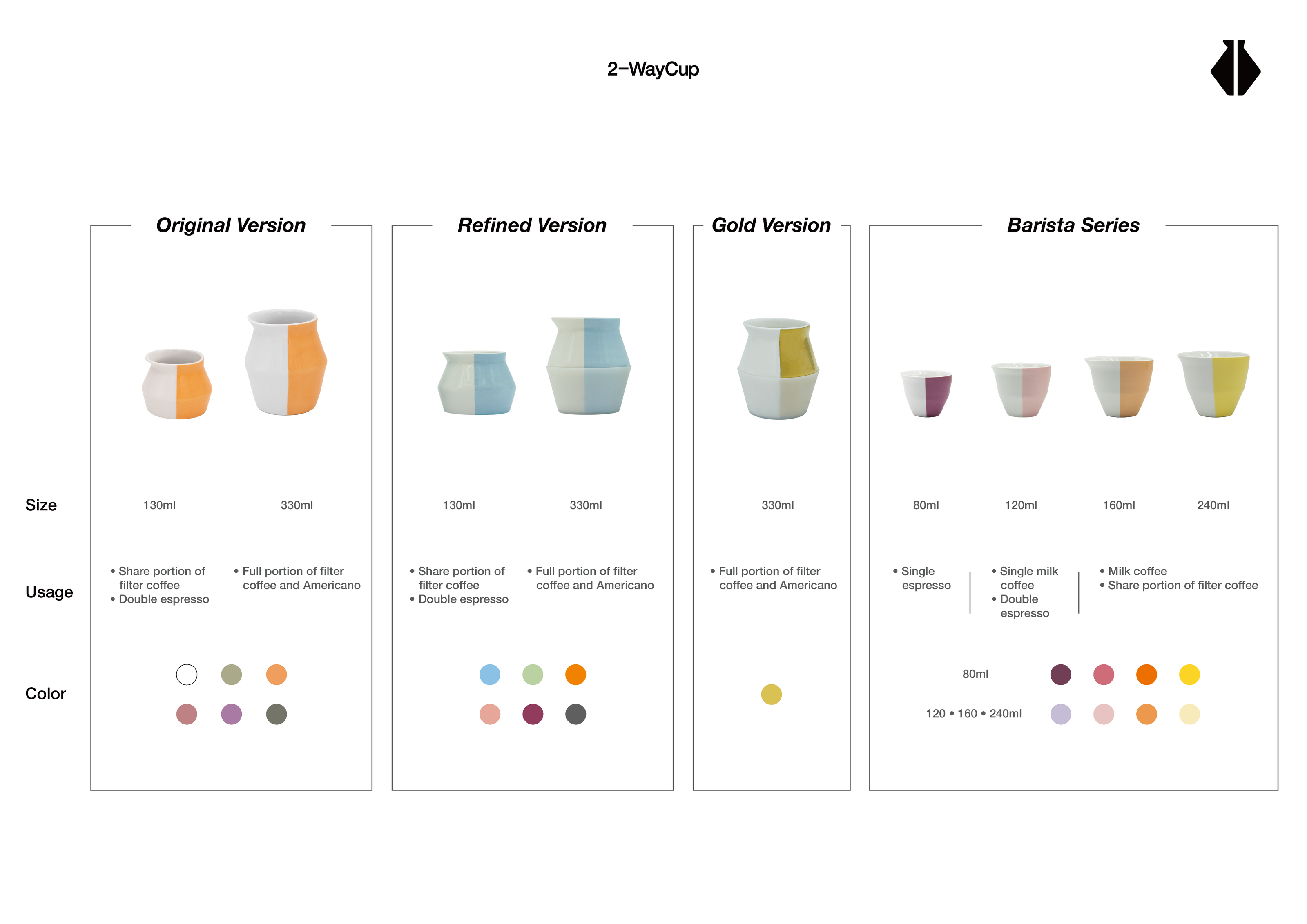 Choose between a small cup (130ml) for espresso, sharing filter coffee, tea, and sake, or a large cup (330ml) for a full cup of filter coffee or an Americano.